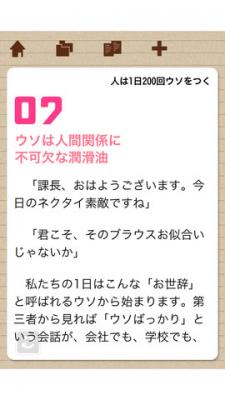 株式会社ユナイテッド・ブックス(本社:東京都新宿区、取締役社長 神澤享裕 http://www.unitedbooks.co.jp)は、iPhoneアプリ「嘘がつけないとウツになる」を2012年10月9日リリースしました。