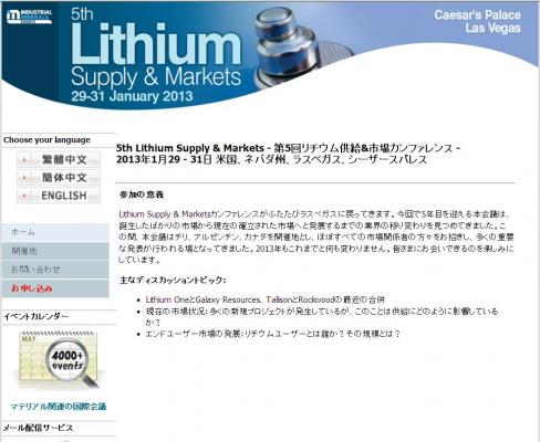 会議:「5th Lithium Supply & Markets-第5回リチウム供給&市場カンファレンス-」