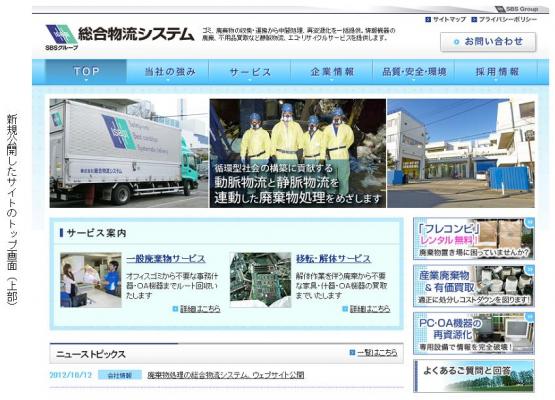 サイトの構成やデザインは、SBSグループのサイト標準に沿っており、統一感を持たせることでブランド訴求を図っているほか、検索エンジンのグーグルやヤフーから高評価されるためのSEO対策などが盛り込まれています。この機会に総合物流システムのサイト(http://www.soubutsu.co.jp/)をご覧ください。