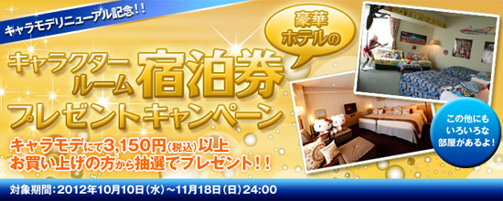 また、リニューアル記念として、人気ホテルのキャラクタールーム宿泊券が当たるキャンペーンを実施中!