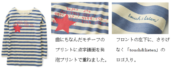 「アトリエメイド touch&listen♪ 歌う点字のドロップショルダー ボーダーTシャツの会」