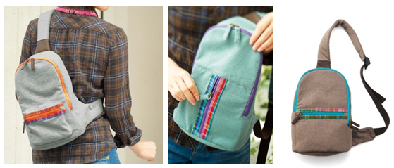 さをり織りは、糸の色や素材、織りの幅などのすべてを織る人の感性にゆだねた手織りの技で、ひとつひとつ異なっています。そのさをり織りがあしらわれたワンショルダーバッグです。