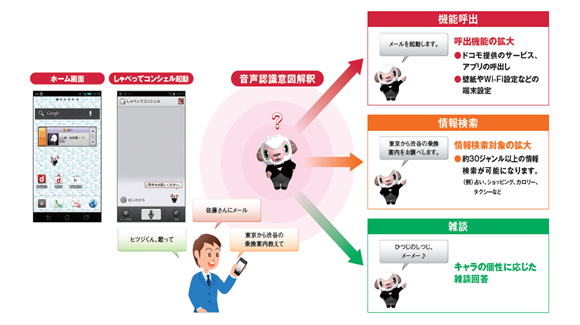 ※「しゃべってキャラTM」「しゃべってコンシェル(R)」「マチキャラ(R)」「ひつじのしつじくん(R)」「メイドのメイちゃん(R)」は株式会社NTTドコモの商標または登録商標です。