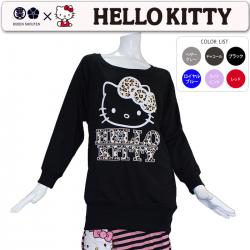 豊天商店 ハローキティ豹柄ポケット付きレディースドルマンスウェットガーゼ裏毛