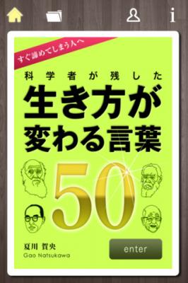 株式会社ユナイテッド・ブックス(本社:東京都新宿区、取締役社長 神澤享裕 http://www.unitedbooks.co.jp)は、iPhoneアプリ「科学者が残した 生き方が変わる言葉50」を山中教授ノーベル賞受賞記念セールとして、10/19までの期間限定通常定価800円の89%オフ、85円で提供します。