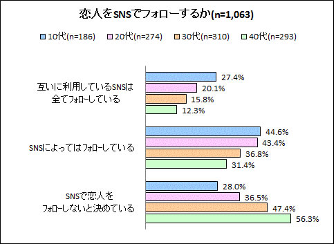 図表参照:【図2】恋人をSNSでフォローするか(年代別)