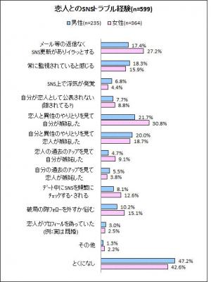 調査対象:男女16-49歳、未婚、現在恋人有、SNS利用経験有
