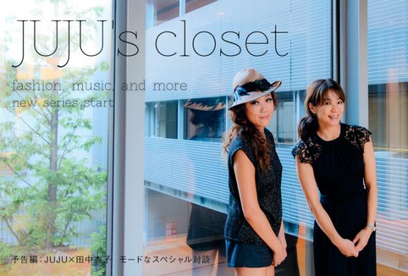 「ハイヒールを履いて歩くときのコツコツと鳴る足音がものすごく気になって…」と、さすがはミュージシャン、ハイヒールへの興味は音からということを語ってくれました。「とにかく洋服が大好き」と語るJUJUと、スタイリストとしても活躍する田中杏子とのファッション談義は、毎日のスタイリングのヒントがいっぱい!