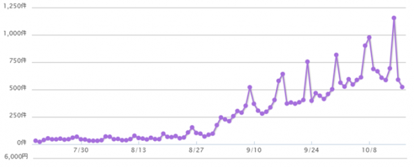 8月末までは取引数が少ないですが、9月に入ってから徐々に取引数が増えてきています。
