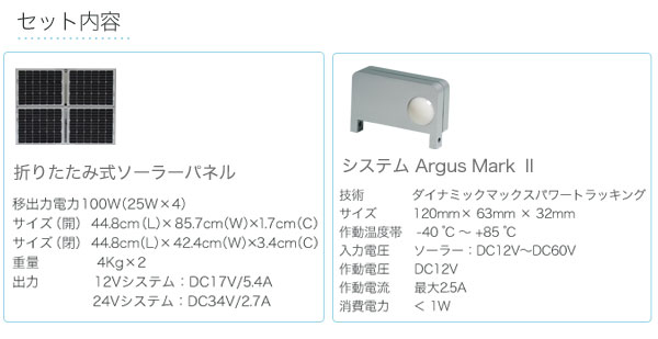 バッテリー、ソーラーチャージコントローラー、インバーターは別売りです。