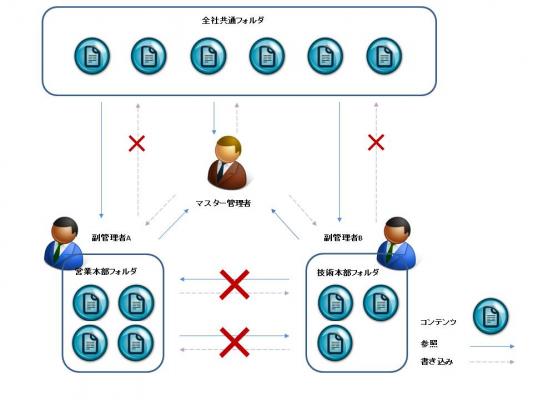 ・コンテンツ管理における副管理者毎の権限設定(読み込み、書き込み)