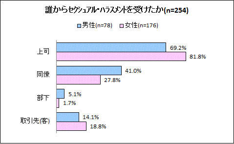 図表参照:誰からセクシュアル・ハラスメントを受けたか(男女別、n=254)