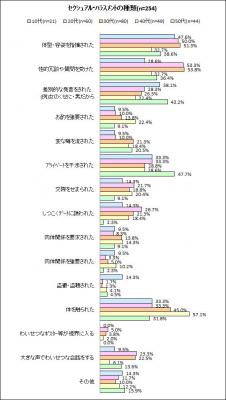 図表参照:セクシュアル・ハラスメントの種類(年代別、n=254)