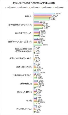 図表参照:セクシュアル・ハラスメントへの対処法・結果(年代別、n=254)