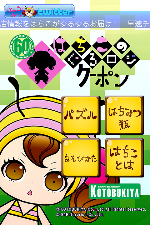 コトブキヤ スマートフォン用アプリゲーム『はちこのぐるロジクーポン』配信決定のお知らせ