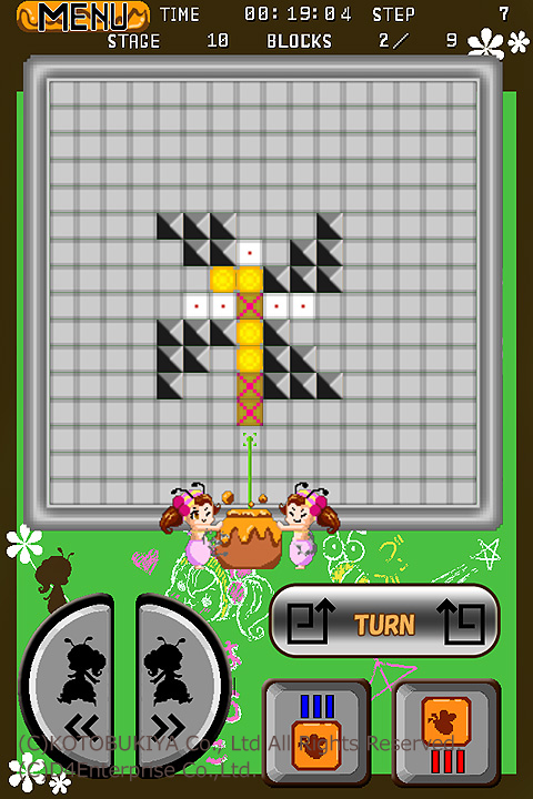 画面回転&ブロック操作を駆使して絵を作るパズルゲーム『ぐるロジ』が装いも新たにiPhoneに登場!今回はコトブキヤマスコットキャラクター、はちこが右に左に大奮闘!さあ、画面をぐるぐる回してパズルに挑戦だ! 目を回さないように注意! (本ゲームはiPhone、iPad、iPod touchでプレイすることができます。詳しくは対応端末を御確認ください。)