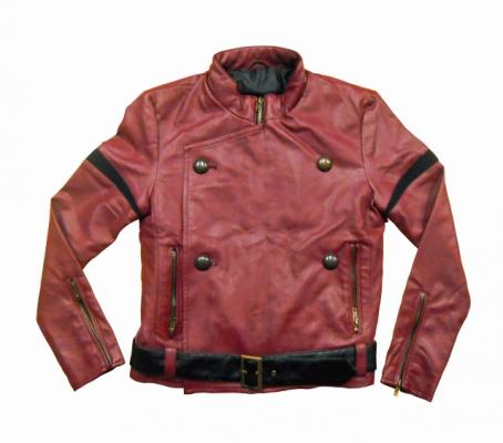 落ち着いた赤色の革ジャンは普段使いにもぴったりのかっこいいデザイン。