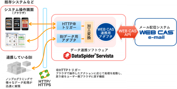図:エイジア WEB CASとアプレッソ DataSpider Servistaの連携イメージ