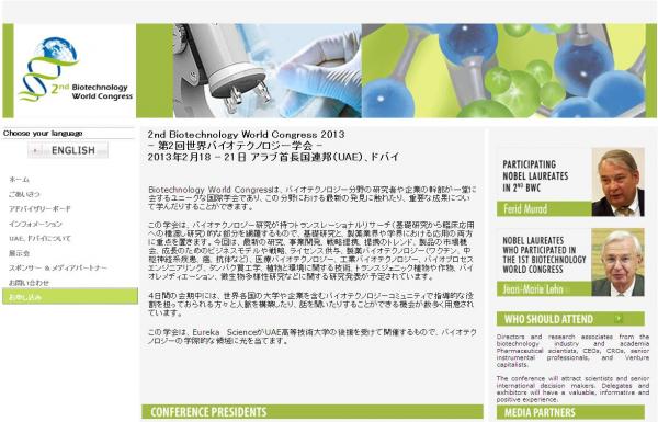 学会:「2nd Biotechnology World Congress 2013-第2回世界バイオテクノロジー学会-」