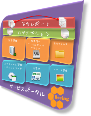 スケジュール管理、タイムカード機能、掲示板、タイムライン、共有フォルダなどの機能を有したグループウェアをはじめ、各種情報セキュリティサービスやクラウドサービスをアドオンできるポータルサービスになります。