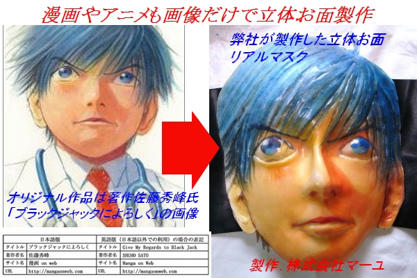 今般、漫画やアニメの画像だけで、立体お面を製作する事を始めました。