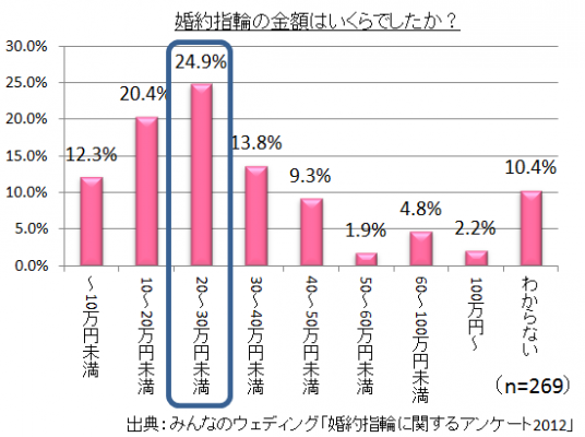 ■婚約指輪の相場、第一位は「20万~30万円(24.9%)」