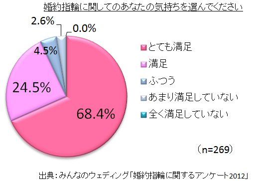 指輪に対する満足度が92.9%と高いことを鑑みれば、「婚約指輪には満足している」という傾向が見て取れます。