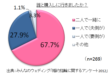 「婚約指輪を購入する際、誰と購入しに行きましたか?」という設問の回答を集計したところ、