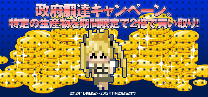 ■政府調達キャンペーン。特定の生産物を期間限定で2倍で買い取り!