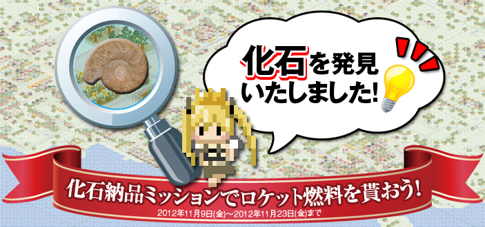 ・イベント概要 地主様・・・ビッグニュースです・・・! なんと、地主様がいらっしゃる大陸に、『化石』が眠っているとの情報が入りました! 古代生物の化石を政府研究機関が収集しているので、地主の皆様にもご協力をお願いします! こちらの『化石』を自治政府に納品いただければ、 自治政府にて研究、復元後、それらのデータを元に『ロケット燃料』を開発し、地主様へ譲渡するそうですBi! 宇宙への夢が広がるチャンス!? 地主様!急ぎ『化石』を探しましょう!