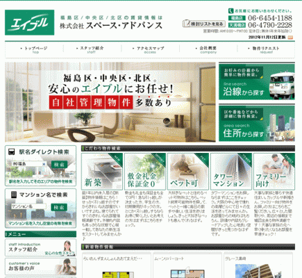 この度の『株式会社スペース・アドバンス』様のwebサイトは、"安心のエイブルにお任せ!自社管理物件多数あり"というコンセプトでサイト作成致しました。