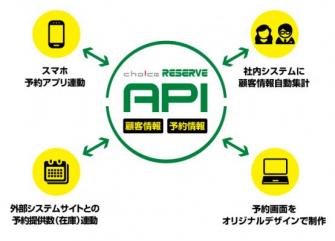 従来の「Choice RESERVE」でも予約データ、顧客データ等はCSV形式でダウンロードをして、運用・集計することが可能でした。このたびのAPI公開により、それらの情報をリアルタイムにサイト・システム上で運用、表示することができます。