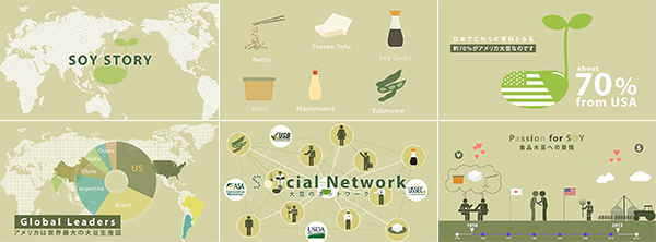 知られざるアメリカ大豆、そして日本とアメリカの関係をモーショングラフィックスで表現した壮大で楽しい大豆のストーリーです。