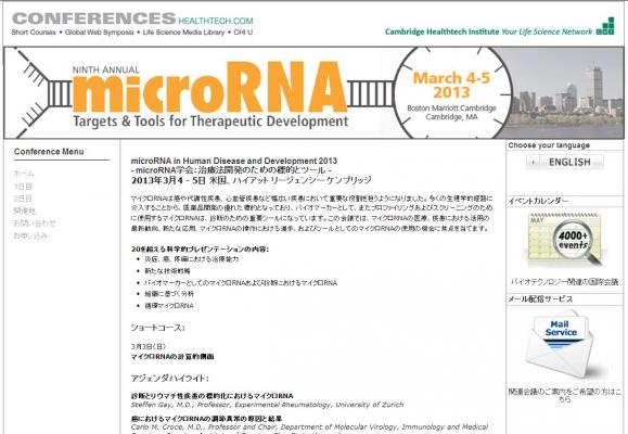 学会:「MicroRNA in Human Disease and Development 2013-microRNA学会:治療法開発のための標的とツール-」