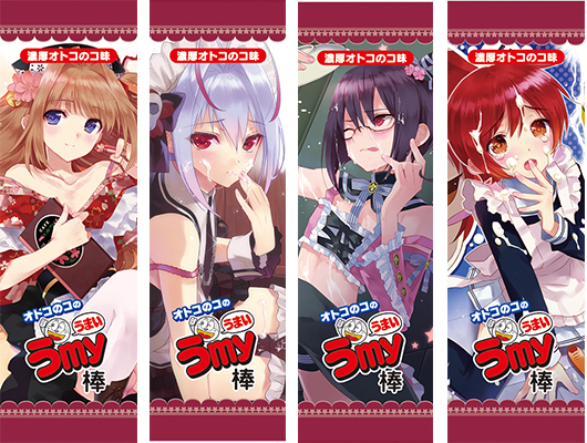店舗限定購入特典として、人気スナック『うまい棒』の『オトスキ!?』オリジナルパッケージバージョン「オトコのコのうmy棒」をプレゼントいたします。パッケージはナオくん・ユキくん・トモくん・リオくん4種類です。メイドさんたちの“うまい棒”をたっぷりお召し上がり下さい♪