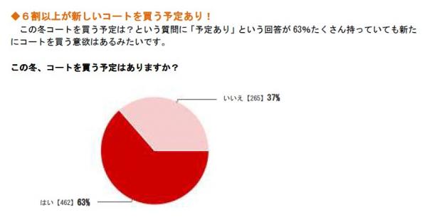 その結果、この冬コートを買う予定はありますか?という質問に「予定あり」との回答が63%となりました。