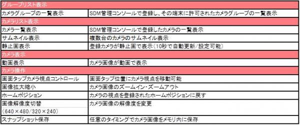 今回ご提供する「PowerCam for SDM」は専用アプリケーションをインストールすることで、スマートフォンやタブレット端末からWebカメラの映像閲覧や操作を行うことができます。複数台のサムネイル表示、Webカメラ映像を閲覧でき、画面タップ位置にカメラ視点を移動させる「カメラ視点コントロール」や「カメラ画像のズームイン・ズームアウト」といったカメラ操作も可能にします。