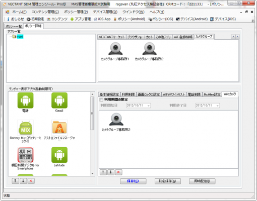 また、管理者によるWebカメラ情報の登録や管理、アプリケーションに表示させるWebカメラの設定等、SDM管理コンソールによるWebカメラや利用端末の一元管理機能も提供いたします。