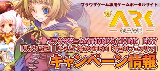 ホリゾンリンク株式会社(本社:東京都品川区、代表取締役社長:田中 進)は2012年11月16日(金)より、「かんたんRPG リゾン戦記」と「キミとつながるRPG 才色のフェアリア」の2タイトル同時にお得なキャンペーンを実施いたします。
