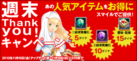 2012年11月16日(金)アップデート後~11月18日(日)23:59まで