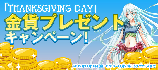 ●「THANKSGIVING DAY」金貨プレゼントキャンペーン!