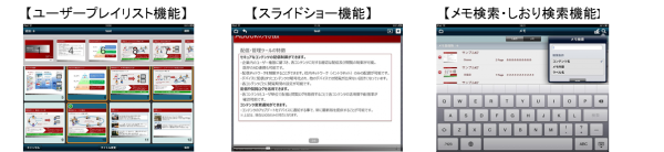 自動でページめくりをする「スライドショー機能」、コンテンツ毎にメッセージを表示できる「コンテンツメモ機能」