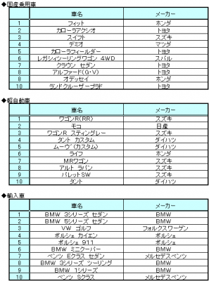 情報流通支援サービスの株式会社オークネット(本社:東京都千代田区/社長:藤崎清孝)は、 2012年10月度のオークネットTVオークションにおける成約台数を集計し、タイプ別ランキング ベスト10をまとめました。