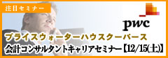 『戦略実現コンサルティングファーム』として、経営戦略立案から業務・組織改革、ITソリューションに至るまでトータルに提供するプライスウォーターハウスクーパース社のF&Aチームが会計コンサルタント向けキャリアセミナーを開催致します!