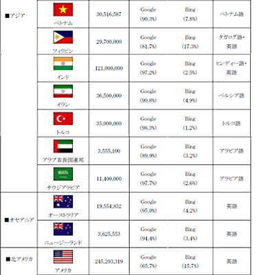 【世界40の国と地域における地域別、検索エンジンシェアの総評】