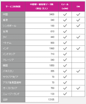アジア市場への進出を図る日本企業は本サービスを利用することで、広告費を抑え、低コストで効果の高い、現地の顧客心理を捉えたダイレクトマーケティングの手法で、狙った顧客層に対して直接商品やサービスを売り込み、定期的に購入するリピーターを増やしていくことができます。