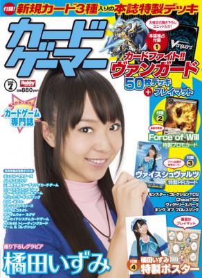 表紙は声優ユニット『ミルキィホームズ』の橘田いずみさん。撮り下ろしグラビアのほか、特別付録として、橘田さんの写真がカードになった『ヴァイスシュヴァルツ』の本誌特製PRカードと、裏面がプレイマットになっている特製ポスターが付属します。