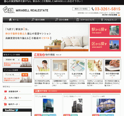 「礼金0円の物件」の特集(http://www.mirabell.co.jp/reikinzero/)