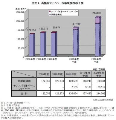 本調査における高機能ファイバー市場とは、日本企業・グループ(海外企業との合弁含む)の国内および海外生産分を対象とし、海外企業・グループの輸入分は含まない。