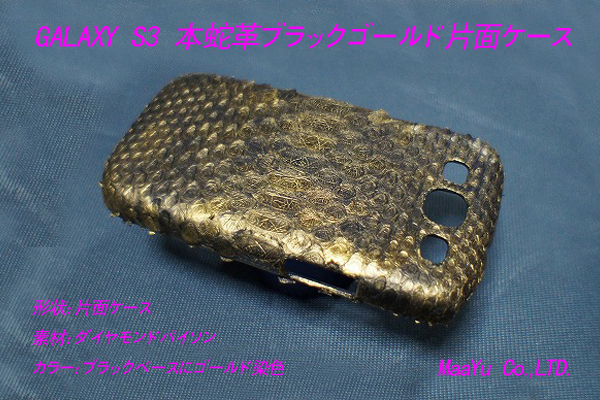 ダイヤモンドパイソンのGALAXY-S3用本蛇革ブラックゴールドケース